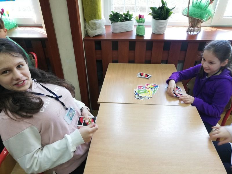Choć w różnego rodzaju gry gramy w świetlicy niemal codziennie, to tym razem zrezygnowaliśmy z wszelkich innych aktywności, aby poświęcić rozgrywkom przy planszy czy kartach cały nasz świetlicowy czas. Zmierzyć się z jak największą liczbą kolegów przy różnych stolikach – to stało się naszym wyzwaniem! Pokaźny zbiór świetlicowy uzupełniły także ulubione gry z własnych uczniowskich kolekcji, więc było w czym wybierać.