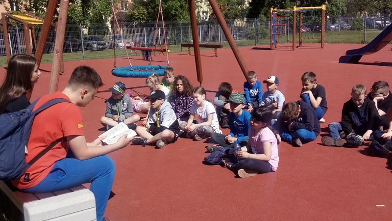 W ramach szkolnego wolontariatu, również uczniowie klasy ósmej VIII F odwiedzają świetlicę głośno czytając młodszym kolegom ciekawe książki.