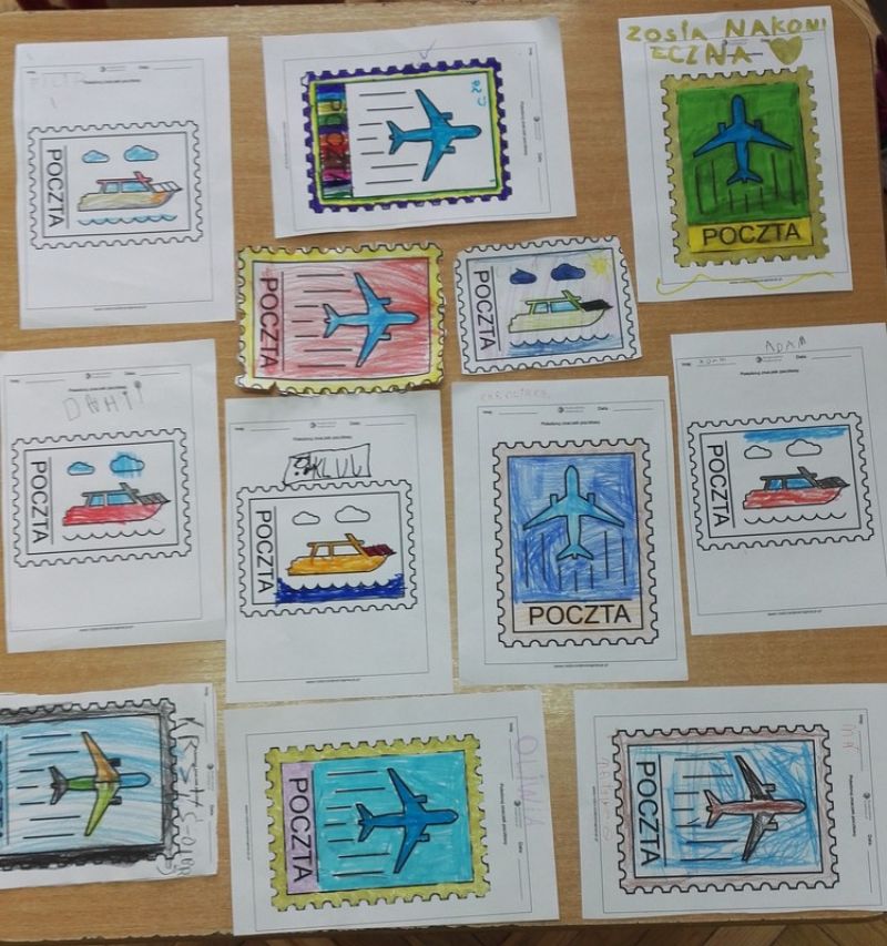 W Świetlicy i Zerówce uczniowie dowiedzieli się z jak wygląda praca listonosza i Urzędu Poczty. Z tej okazji obejrzeli filmik edukacyjny "Dzień Listonosza". Poznali nazwę "Filatelistyka" - czyli motywy na znaczkach pocztowych. Następnie projektowali własny znaczek pocztowy. Rozwiązywali także zagadki dotyczące poczty. Na koniec oglądali film o pracy listonosza Pata.