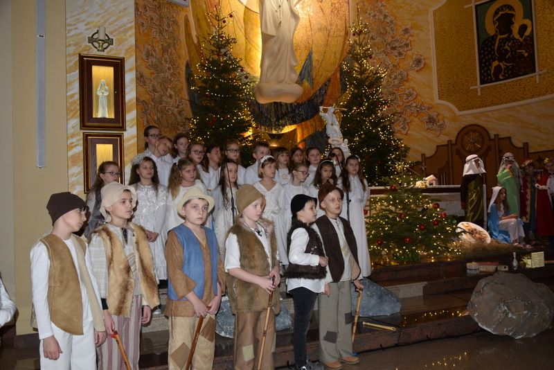 19 stycznia uczniowie klas 2b i 3c i uczestnicy projektu edukacyjnego "Śpiewam, tańczę, gram i radiość z tego mam", zaprezentowali jasełka w kościele parafialnym pw. Matki Bożej Fatimskiej. W jasełkach podziwiać można było obok Świętej Rodziny odtwórców ról: pasterzy, Mędrców, Heroda, Diabełków. Nie zabrakło humoru i wspaniałej gry młodych aktorów, którzy włożyli w swoje role cały swój talent, serce i radość. Jasełkowe sceny przeplatane były pastorałkami, utalentowanych solistów w towarzyszeniu chóru. Korzystając z okazji młodzi aktorzy złożyli życzenia z okazji Dnia Babci i Dziadka.