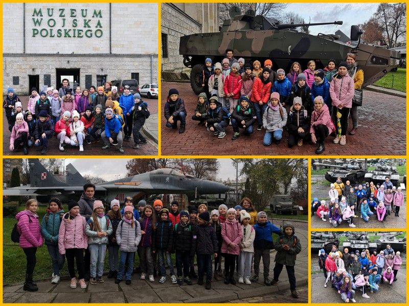 W dniu 10 listopada klasa IIIc wraz z wychowawczynią p. Anitą Rodak udała się na wycieczkę edukacyjną do Muzeum Narodowego Wojska Polskiego. Tematem lekcji było pytanie: Co zawiera plecak żołnierza? Uczniowie poznali jego zawartość i przydatność niektórych, mniej znanych rzeczy, które w nim się znajdowały. Spacer po muzeum dał uczniom możliwość zobaczenia, jak wyglądało umundurowanie podczas wojny, a historyczne eksponaty wzbudzały duże zainteresowanie, szczególnie te, które pochodziły z różnych, egzotycznych krajów. Choć pogoda była kapryśna przez cały dzień, to podczas wycieczki, szczególnie wtedy, gdy zwiedzaliśmy eksponaty na zewnątrz, aura była nam przychylna. Nie potrzebne były nam akcesora przeciwdeszczowe, a humor nam dopisywał. Wszyscy wrócili zadowoleni i niektórzy postanowili, że jeszcze raz wrócą do muzeum, by bliżej poznać dzieje oręża polskiego. Za opiekę dziękujemy p. Donacie Maciąg.