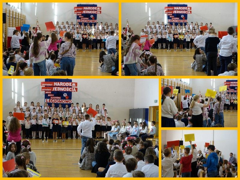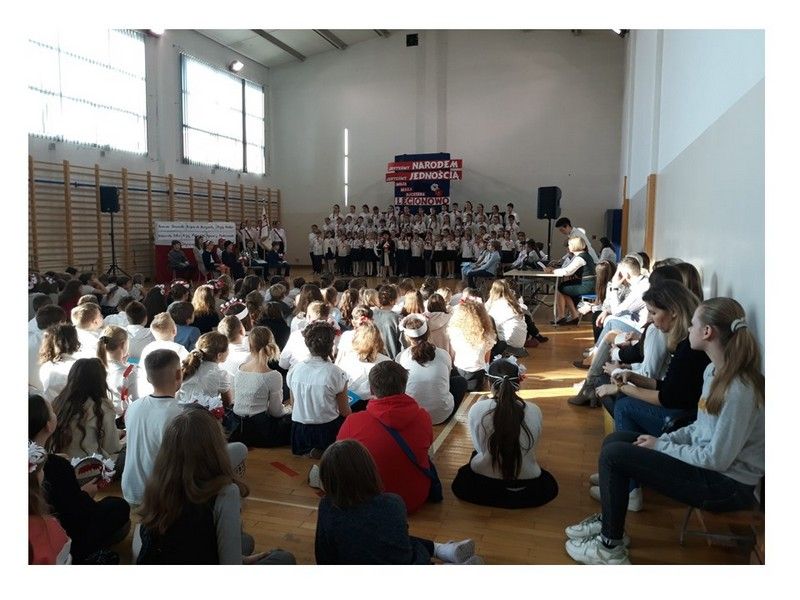Uroczystość uświetnił chór szkolny, który wykonał przepięknie kilka pieśni patriotycznych. Nastój był uroczysty, podniosły, a wspaniałe dekoracje udekorowały przestrzeń. To był piękny dzień dla naszej klasy i całej szkoły.
