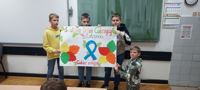 W ramach obchodów Światowego Dnia Cukrzycy, uczniowie klasy 5b realizowali projekt klasowy. Działania jakie zostały podjęte podczas realizacji to: