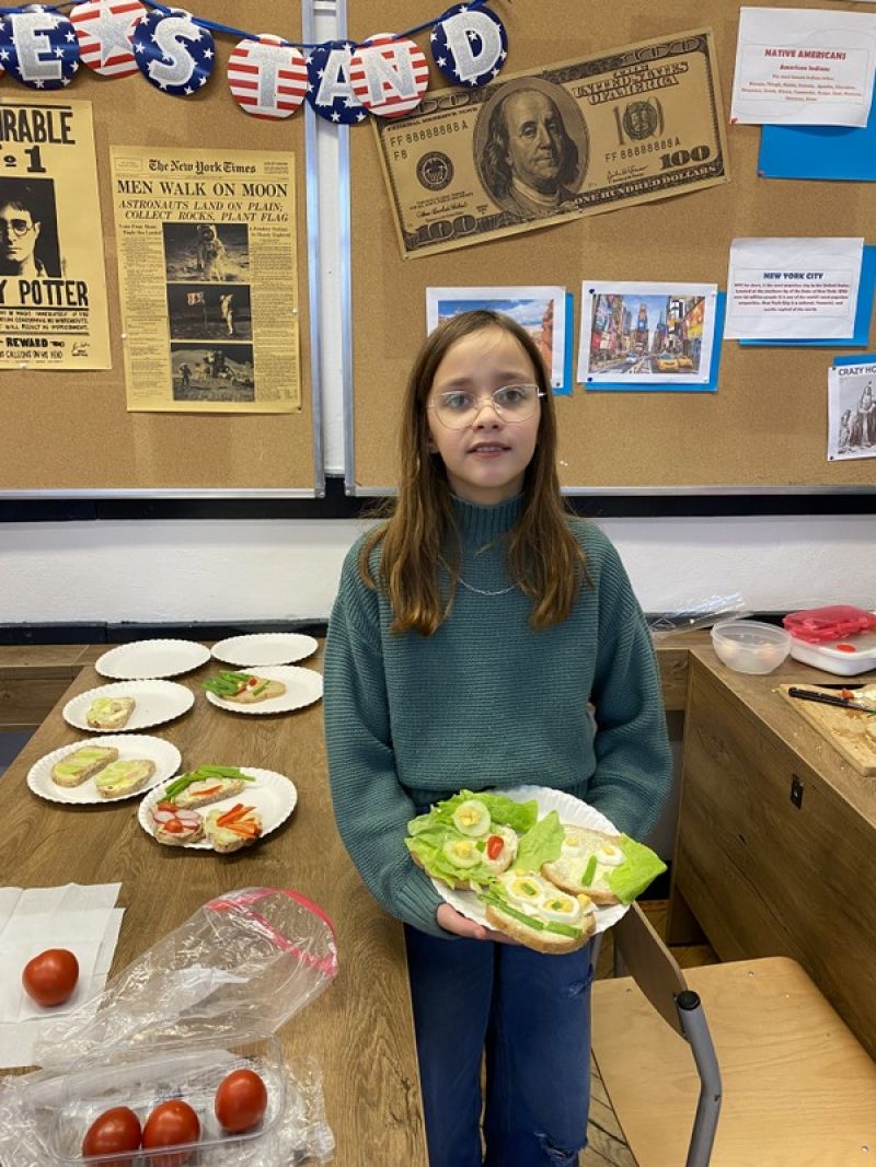 Uczniowie klasy 4A postanowili przygotować zdrowe drugie śniadanie i wspólnie zasiąść do stołu. Uczniowie przygotowali sałatkę owocową, szaszłyki warzywne i owocowe, kolorowe kanapki, jogurt z owocami i musli, a także koktajle owocowe. Wszystko było bardzo pyszne, a samo przygotowywanie potraw wywołało dużo radości i przyjemności!