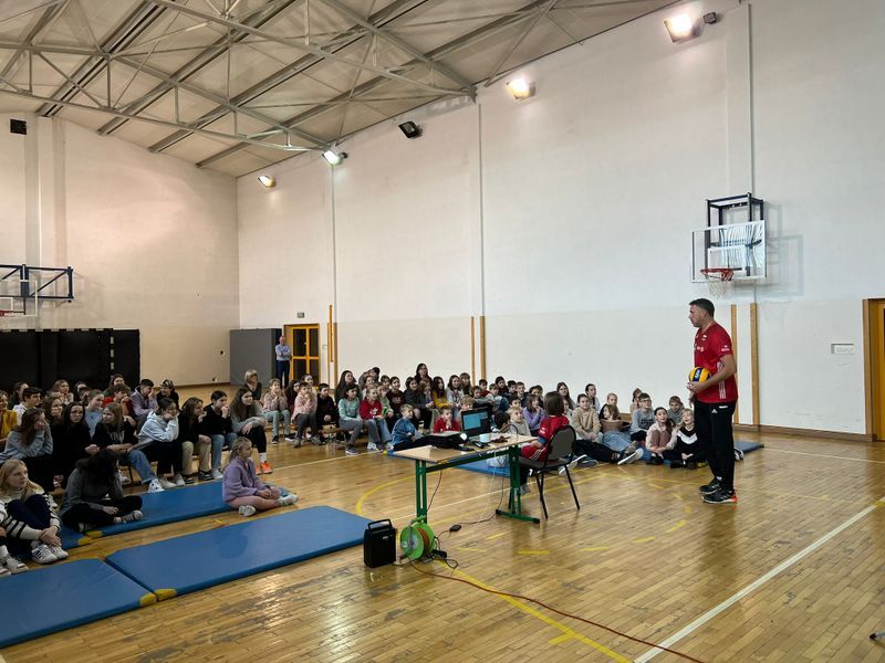 Marcin Prus wielokrotny reprezentant Polski w piłce siatkowej, ambasador Szkolnych Ośrodków Siatkarskich spotkał się z uczniami Szkoły Podstawowej nr 8 w Legionowie.