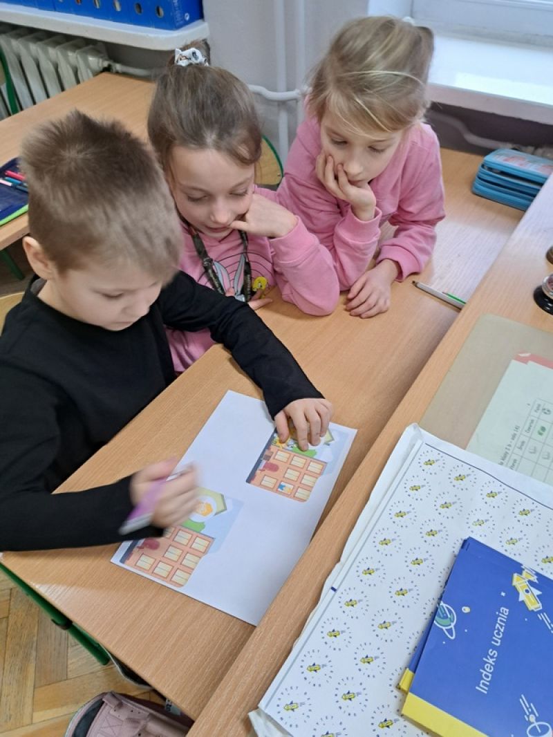 Uczniowie klasy 1e realizują projekt Uniwersytetu Dzieci "Ciekawskie pierwszaki. Jak poznawać świat w klasie."