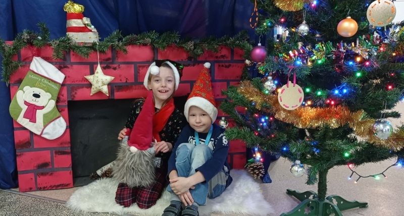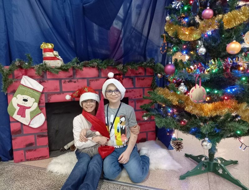 Obok świetlicy szkolnej pani Joanna Marciniak-Langier przygotowała scenerię świąteczną z kominkiem, choinką i akcesoriami mikołajowymi. Wszyscy chętni mogli skorzystać z okazji zrobienia sobie pięknego zdjęcia. Efekty są godne podziwu.