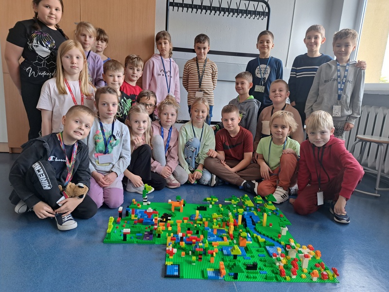 Uczniowie klasy 1a podczas zajęć w Laboratorium Przyszłości tworzyli las, a następnie park.